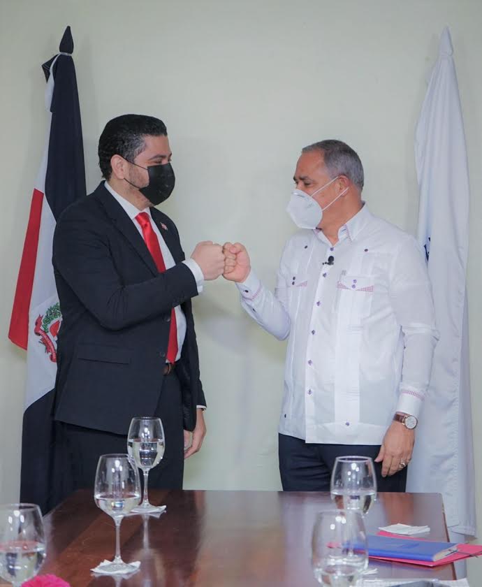 Santo Domingo.-El director nacional de Emprendimiento del Ministerio de Industria y Comercio, Roger Marte y el director general de Desarrollo Fronterizo, Ramón Ernesto Pérez, sostuvieron un encuentro de alianza estratégica para la puesta en marcha del programa “Reto Frontera”.